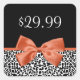 Etiquetas de preço de impressão butique preto-e-branco, com uma fita laranja gravada a na moda, atada a um arco feminino. Personalize este design de padrão animal fofo adicionando o preço de venda de varejo de sua escolha. Imagem impressa plana, não fita real.