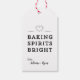Esta simples e fofa etiqueta de presente apresenta os espíritos de panificação de texto brilhantes numa fonte moderna. Personalize esta etiqueta com o seu nome e uma mensagem, se preferir. As costas apresentam um adorável padrão cardíaco. Estas parecem excelentes em papel kraft ou uma etiqueta sólida! Estas são perfeitas para o seu assar ou festa de troca de biscoitos!