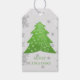 Marque seus presentes de Natal para os seus beneficiários nesta temporada de Natal com uma Etiqueta de presentes de Árvore de Natal Festiva Verde. Design de etiqueta para presente apresenta uma árvore de Natal vibrante e festiva adornada com flocos de neve em queda e um cartões de natal. Itens adicionais de presentes e feriados disponíveis com este design também.