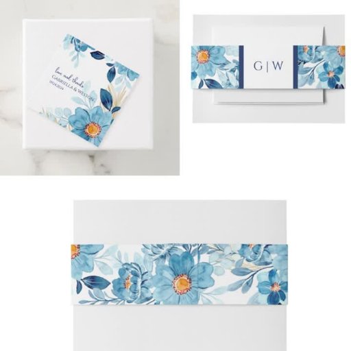 Personalize esta etiqueta azul de presente floral. Somente o texto pode ser personalizado.