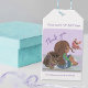 Esta etiqueta de presente roxa apresenta uma garota fofa com uma borboleta e um gato adorável. Personalize-o com Obrigado por estar aqui ou manter a mensagem de texto ou outro texto personalizado para fornecer estas etiquetas de presentes para as crianças que frequentam o 5 de Aniversário da Gota e Gatinho.