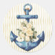 Esta âncora azul de aquarela tem belos rosas de cor creme e repousa sobre um fundo de linhas de ouro onduladas. Este adesivo combina com o nosso Conjunto Elegante de Molas de Âncora e o papel de tecido se você estiver procurando uma aparência coordenada.