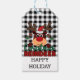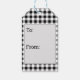 Uma Etiqueta De Presente De Xadrez De Buffalo Branco E Preto Para Os Presentes De Férias Projetados Com A Reindeer De Natal