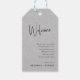 Etiqueta de presente de casamento bem-vindo, moderno minimalista caprichoso, tipografia de escrita branca personalizável. O fundo texturizado de linho cinza claro impresso adiciona um toque de sensação orgânica e elegância clássica. Outras cores estão disponíveis.