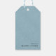 Etiqueta de presente de casamento bem-vinda, caprichosa minimalista moderna, tipografia de escrita branca personalizável. O fundo de textura de linho impresso em azul pálido adiciona um toque de sensação orgânica e elegância clássica. Outras cores estão disponíveis.