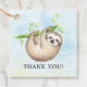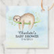 Etiqueta de favor de chá de fraldas bonito com a preguiça mais doce colocada sobre fundo azul de aquarela.