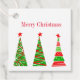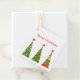 Esta etiqueta de presente é mostrada com uma impressão festiva de árvores de Natal. Personalize este item ou comprar como está. Imagem do stock vecteezy.com