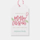 Faça uma declaração impressionante nesta temporada de festas com esta etiqueta de presente enforcada personalizada na na moda com "Feliz Natal" em uma letra de script de pincel. Use o botão personalizar para opções avançadas de edição. Compre nossa loja online para mais peças neste design!
