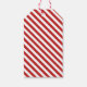 Esta etiqueta de presente do Papai Noel contém um selo de entrega, assinatura de Papais noeis e método de entrega que pode ser personalizado com o nome de seus filhos. A parte de trás apresenta um padrão horizontal vermelho e branco festivo.
