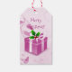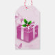 Crie um toque exclusivo a todos os presentes de Natal com uma etiqueta de presentes de Natal rosa. O design de etiqueta de presente apresenta um presente de Natal rosa vibrante adorado com flocos de neve caindo contra um elegante pergaminho e deixa fundo. Itens adicionais de presentes e feriados disponíveis com este design também.