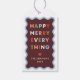 Criado para combinar com a coleção de cartões de Natal "Happy Merry Wavy", esta etiqueta de presente de Natal divertida apresenta uma moldura decorativa ondulada. A saudação "Happy Merry Everything" é uma saudação não tradicional que pode ser aplicada a qualquer e todos os feriados que ocorrem durante a temporada de festas. As palavras são compostas por uma variedade de cores para adicionar um toque de capricho ao design. Logo abaixo da saudação há um pequeno coração e espaço para o nome do cliente. A parte de trás da etiqueta apresenta um padrão ondulado coordenado.