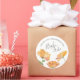 Elegante etiqueta de presente de proposta de dama de honra ou madrinha em formato redondo único com moldura de papoulas laranja em aquarela original cerca os detalhes da proposta. A fonte é definida em uma sans serif moderna elegante e um tipo de letra manuscrita. Perfeito para adicionar a velas para pedir presentes para a festa de casamento. Para ver mais designs de Victoria Grigaliunas na Do Tell A Belle visite www.zazzle.com/dotellabelle