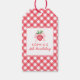 Etiqueta de presente de Xadrez de piquenique vermelho de morango, texto personalizável.