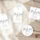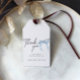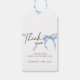 Etiquetas modernas de agradecimento para os brindes da sua festa de chá de noiva com laço azul. Perfeito para uma festa de despedida de solteira com o tema "Ela está dando o nó".
