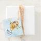 Etiqueta de favor de chá de fraldas bonito com preguiça-mãe e bebê colocada sobre fundo azul de aquarela.