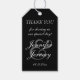 Esse obrigado de casamento personalizado que você favorece as etiquetas apresentam um simples design de caligrafia branca em um fundo preto de tendências. Personalize com seus nomes, sentimentos e data de casamento. Os melhores votos para o seu casamento e casamento! Desenhada por Susan Coffey.