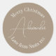 Mantenha-o simples com este adesivo de etiqueta de presente de Natal. Está numa cor bege gigante. Tem espaço para você adicionar seu nome e a mensagem, "Feliz Amor de Natal dos Papais noeis xxx" na tipografia da na moda. Para personalizar, basta adicionar seu nome usando o botão personalizar este texto. O design é totalmente personalizável e você pode alterar o resto do texto usando o botão Personalizar ou alterar a cor ou a fonte usando a ferramenta design do editor. Perfeito para seu presente embrulhando este feriado. Feliz Natal! Se você precisar de ajuda com a personalização, produtos correspondentes ou para um projeto personalizado, entre em contato comigo via chat zazzle ou email: ursuladawnmoon@gmail.com
