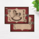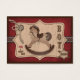 Design de rusticidade ocidental com cavalo de balanço, corda, crachá do xerife e elementos de pontos de sela para um cartão de presente de bebê.