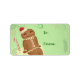 Um homem sorridente de gengibre senta-se sobre um cupcake fofo enfeitado com hortelã-pimenta, tempero de canela e tudo o que é legal. Rotule seus presentes com doce alegria de feriado!