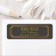 Rótulo de endereço com uma estrutura dourada falsa de deco de arte com fundo marrom de café. Esquema de cores da arte deco.