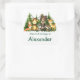 Animais da Floresta de Madeira de Cores Aquáticas e Etiquetas de Placas de Pinheiros. Os Bebês incluem Urso, Veado, Moose, Raccoon, Coelho Coelho, Raposa e Coruja com vegetação florestal. Adicionar Nome.