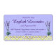 Um fundo púrpura pastel com xadrez amarela no fundo cria uma frescura em tempo de primavera para esta etiqueta. Duas Lavandas florescem à esquerda e à direita. A área central tem seis linhas de texto personalizáveis coloridas correspondentes. Perfeito para sabão, velas, pourri-pote, sais de banho.