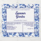 Esta etiqueta elegante, à prova d'água, para sais de banho, mede 4 por 3,5 polegadas (102 por 89 mm). Ele tem uma borda que apresenta um padrão floral azul e branco em volta de um painel branco com texto azul com espaço para o nome da sua empresa, nome do produto, ingredientes, descrição do produto e informações de contato comercial. Esta etiqueta é concebida como uma etiqueta para as bolsas de sal de banho, mas poderia também ser utilizada como uma etiqueta para grandes frascos cosméticos ou outros recipientes cosméticos maiores.