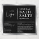 Adicione o toque de acabamento aos seus sais de banho, impregnação corporal ou qualquer outro produto de banho e corpo com este elegante design de etiqueta de produto à prova d'água. Apresentando efeitos falsos de prata, fundo preto, espaço para o seu logotipo, nome do produto e ingredientes, este adesivo de produto moderno certamente adiciona um toque de vidro ao seu design de embalagem de produtos. Perfeito para usar para suas bolsas de sabão de banho ou frascos.
