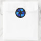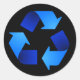 Adesivo preto com símbolo azul brilhante de reciclagem.
