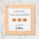 Adição perfeita à mala para o Feliz Dia das Bruxas para a festa da sua criança! Rotule qualquer saco de tratamento para compartilhar com amigos. Padrão simples, aquarela, laranja, gingham com pãezinhos giros jack-o-lanternas.