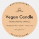 Elevem a sua embalagem de vela com esta etiqueta de vela vegana personalizada. Perfeito para velas de soja feitas à mão, este adesivo redondo destaca seu nome de marca e detalhes do produto em uma design moderna e limpa. Ideal para pequenas empresas, fabricantes de velas artesanais e embalagens de produtos ecológicas.