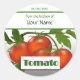 Uma ilustração gráfica do tomate num adesivo com etiqueta de conserva. O adesivo tem modelos de texto para sua personalização. ©2013charmanepaulson