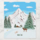 Cena de inverno com montanhas nevadas, cabana rústica e um dólar olhando para o vale abaixo dele. Arte original por W.B.