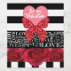 Desenhos lavados de rosas vermelhas e amores em preto com riscas brancas e pretas. Personalize o monograma e a mensagem na etiqueta. Adequado para Dia de os namorados, Aniversários, Novas Semanas, Fidelidade ou Fiancee, Anniversários e outras ocasiões de amor.