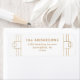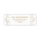 Essas etiquetas de endereço de retorno de casamento glamourosas apresentam um spin moderno no deco de arte clássico. O ouro puro parece bordas geométricas e ornamentação decoram um fundo branco elegante para um olhar dramático e casamento vintage.