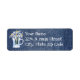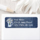 Essas etiquetas de endereço de retorno têm um fundo de denim azul com um vaso de Daisys, à esquerda. A caixa de texto pode ser personalizada com suas informações.