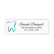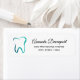 Etiquetas de endereço com uma ilustração de um dente dentário. Desenhado com um contorno de gradiente verde.