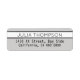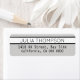 Uma etiqueta elegante de endereço de retorno com seu nome escrito em uma faixa branca sobre fundo de cinza pálida com endereço