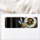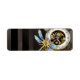 Marcações antigas com engrenagens de ouro e latão, decoradas com libélula mecânica sobre fundo castanho e listrado. Steampunk.