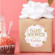 Adesivo de chá de fraldas de pontos dispersos, cor-de-rosa e dourado, com aspecto brilhante.
