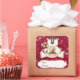Um urso polar querido segura uma bengala verde e listrada branca e veste um arco de cabelos entorpecido e um galho no peito. Abaixo está uma faixa branca com seu texto personalizado em verde. As imagens são colocadas sobre um fundo vermelho que é decorado com corações cor-de-rosa e brancos. Festivo, colorido, único e útil para os presentes de rotulagem. Faça-o dizer o que quiser. *Obrigados para a Clipart Real Deal para o cliente usado para criar este design.