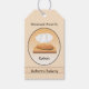 Uma ilustração gráfica do pão assado em uma etiqueta de presente. A etiqueta tem modelos de texto para a sua personalização. Arte original: Direitos autorais Charmaine Paulson