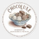 Etiqueta de produto de um chocolatier com uma tigela de chocolate pintada e um tipo decorativo único para o seu nome comercial. Para fabricantes de chocolates, trufas e outros produtos de confeitaria.