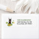 O lado esquerdo destas etiquetas de endereço de retorno apresenta uma imagem de um lindo cão Doberman Pinscher entre girassóis dispersos e folhas de eucalipto. Seu texto personalizado está em verde e preto à direita.