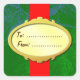 Este adesivo personalizado tem uma estrutura em ouro biselada em uma fita vermelha em um plano de festas verde da floresta com um padrão de pinho azul e verde criado de uma gravação de safra. Adicione sua própria mensagem pessoal a este adesivo!