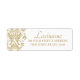 Dourado damask sobre uma etiqueta branca de endereço de retorno de fundo nítida para qualquer ocasião adicionará um toque de elegância a todas as suas mensagens. Este rótulo impresso em ouro e branco cumprimentará nosso conjunto de convites para casamento.