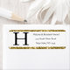 Etiquetas de endereço de retorno elegantes em letras brancas e pretas. Monograma inicial alfabético. Glitter listras de ouro. Adicione-os aos envelopes para adicionar algum toque de classe. Perfeito para qualquer ocasião: Casamento, aniversário, anúncio, formatura. Templos editáveis - adicione suas próprias informações.