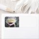 Um dragão barbudo feliz olhando para cima com um grande sorriso aberto.