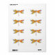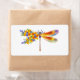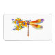 Pintura artificial, libélula floral em laranja e roxo contrastantes com papoila amarela, brilhante e florescente da Califórnia e flores silvestres azuis em fundo branco.