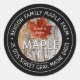 Etiqueta de xarope de bordo editável com latido de bordo e folha vermelha.